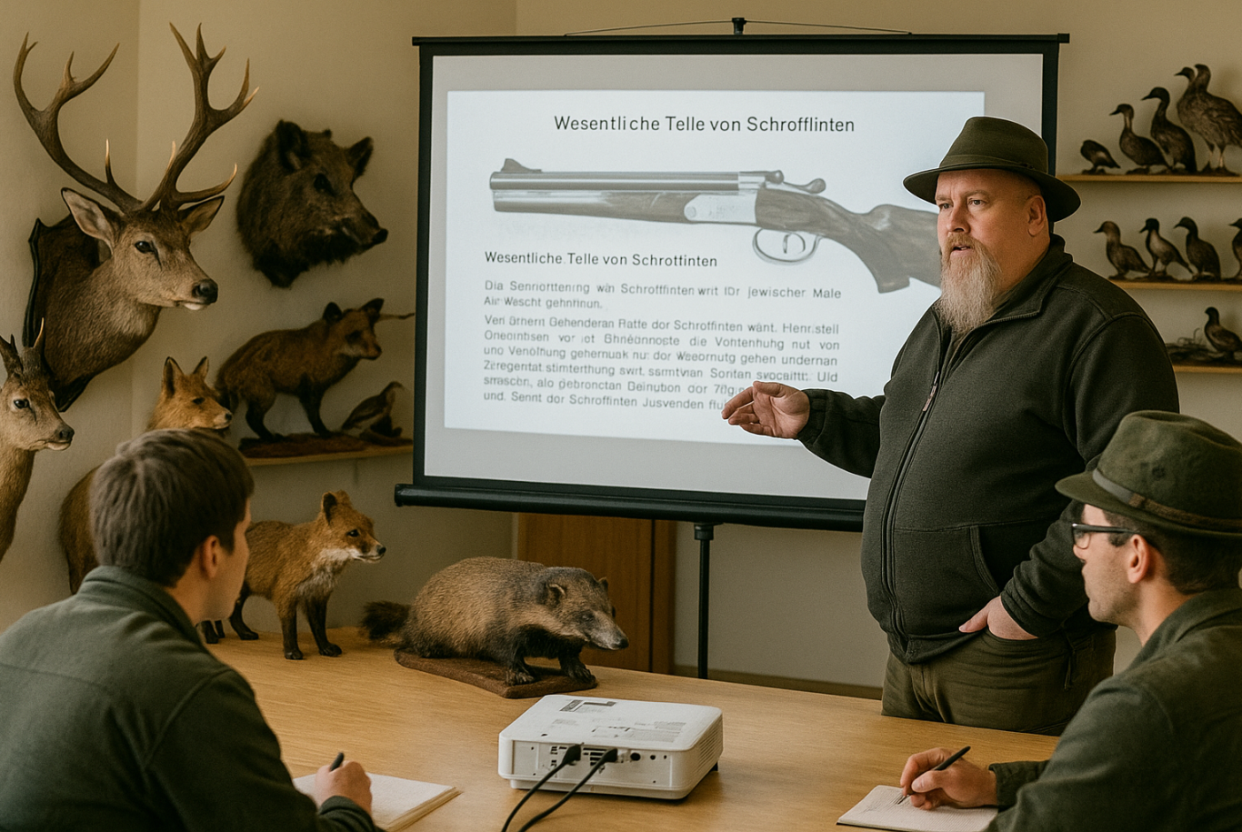 Unsere Jagdausbildung ist vereinsintern. Kein Verkaufszirkus, kein Durchwinken. Wir bereiten dich strukturiert und praxisnah auf die Jägerprüfung vor: Recht, Ethik, Wildbiologie, Waffen/Sicherheit, Revierpraxis und Prüfungstraining.